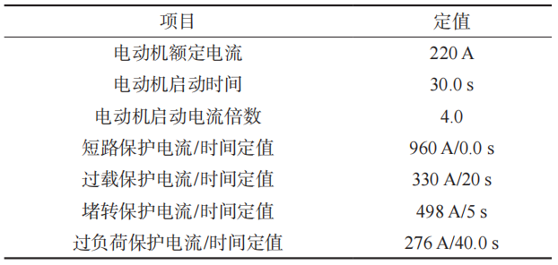 電動(dòng)機(jī)保護(hù)器主要定值見(jiàn)表1。